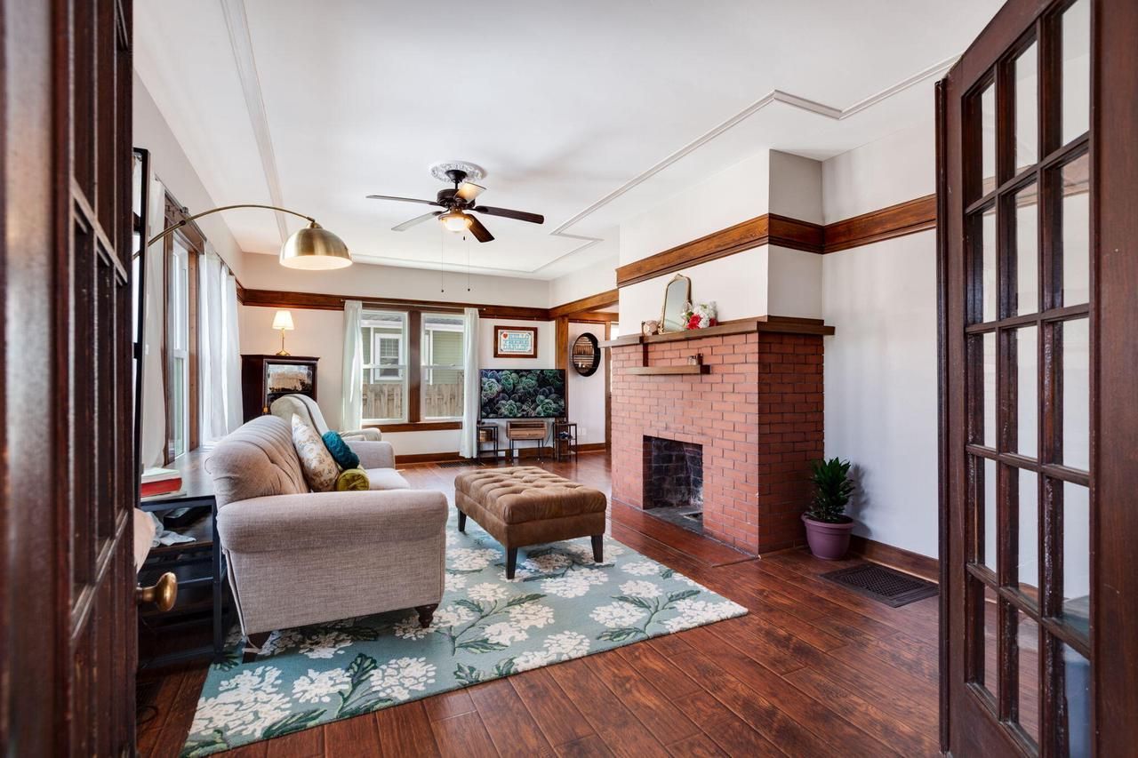 Welcome to this beautifully updated 3-bedroom Farmhouse in the heart of Walworth, just steps from schools, restaurants, and downtown! Entering through the front three-seasons room, elegant French doors lead into a home perfectly blending modern updates with historic charm. The living room, featuring a decorative (non-functional) fireplace, flows into a formal dining room showcasing gorgeous original built-ins. You'll love the bright, open kitchen with its bay window overlooking the backyard, complete with a new wood fence! Upstairs features three generous bedrooms boasting beautiful original woodwork, plus a full bathroom with classic built-in cabinets. With fresh touches complementing its historic soul, this move-in-ready gem is a must-see. Showings begin March 23rd.
